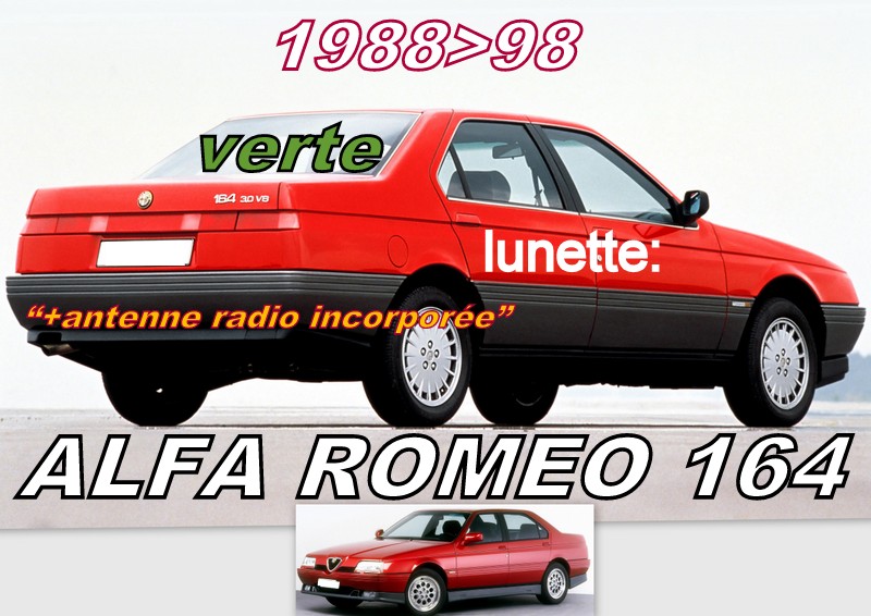 Accueil » Marques de voitures » ALFA ROMEO » ALFA ROMEO 164 lunette teintée verte – 1988/98 +antenne