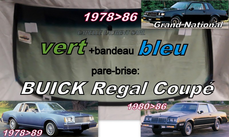 Pare-brise teinté vert +bandeau bleu BUICK REGAL Coupé-1978/86