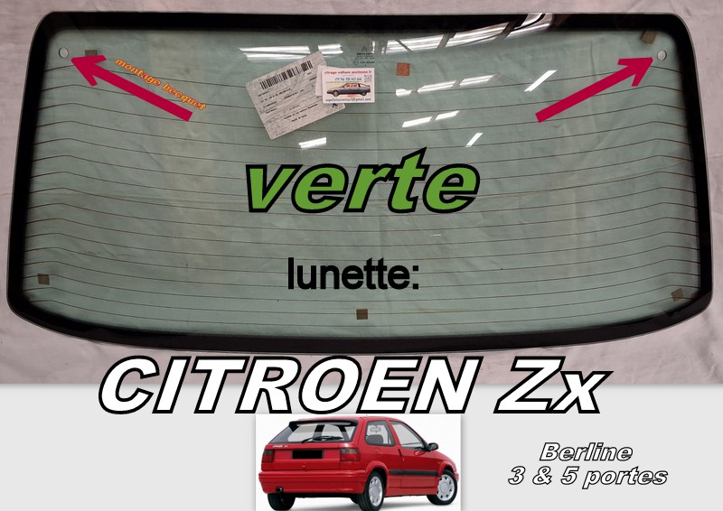 Lunette teintée verte CITROEN ZX Berline 3 & 5 portes, pour montage becquet