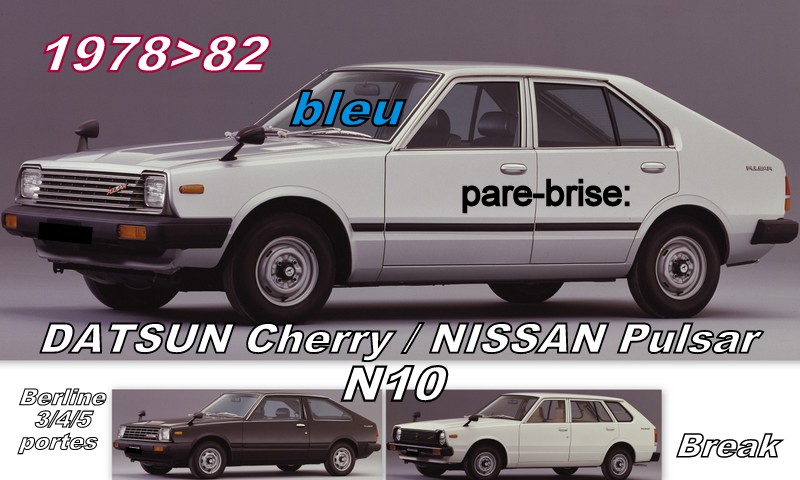 Accueil » Marques de voitures » DATSUN » DATSUN CHERRY N10 BERLINE pare-brise teinté bleu – 1978/82