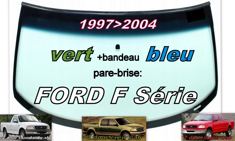 Pare-brise teinté vert +bandeau bleu FORD F 150 PICKUP-1997/2004