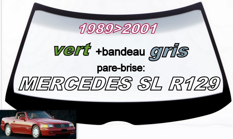 Pare-brise teinté vert +bandeau gris MERCEDES SL R129-1989/2001