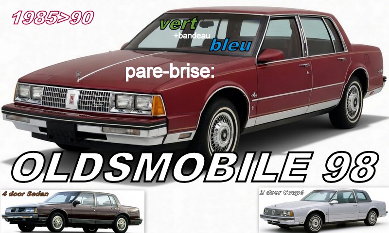 OLDSMOBILE 98 COUPE/SEDAN pare-brise teinté vert +bandeau bleu – 1985/90