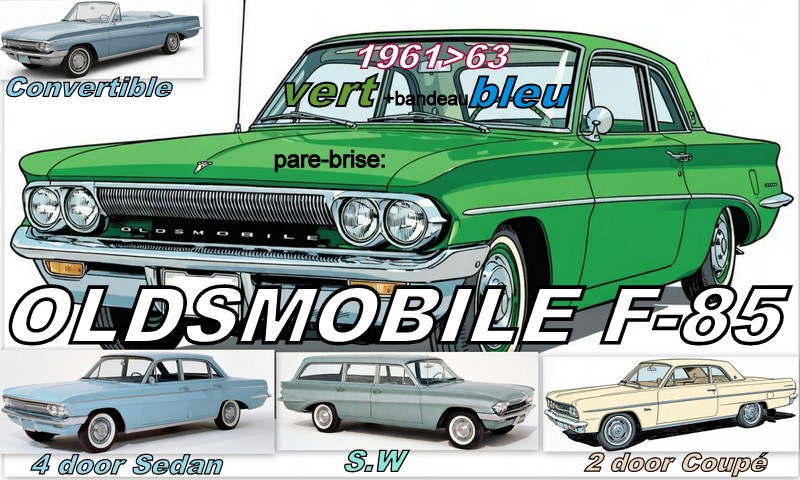 OLDSMOBILE F-85 pare-brise teinté vert +bandeau bleu – 1961/63