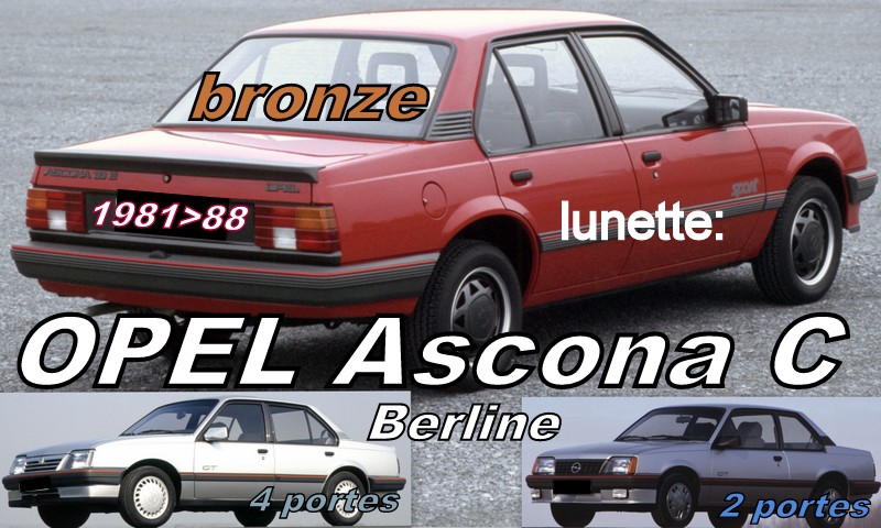 Accueil » Marques de voitures » OPEL » OPEL ASCONA C – 2/4 portes lunette teintée bronze – 1981/88