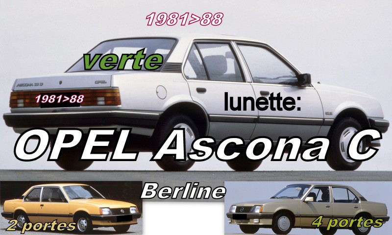 Accueil » Marques de voitures » OPEL » OPEL ASCONA C – 2/4 portes lunette teintée verte – 1981/88