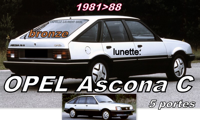 Accueil » Marques de voitures » OPEL » OPEL ASCONA C – 5 portes lunette teintée bronze – 1981/88