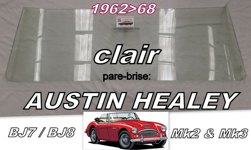 Pare-brise clair AUSTIN HEALEY MK2 & MK3-BJ7/BJ8-1962/68-Convertible, 4 places