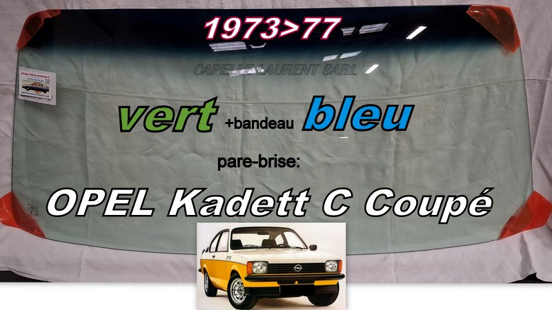 Pare-brise teinté vert +bandeau bleu OPEL KADETT C Coupé-1973/79