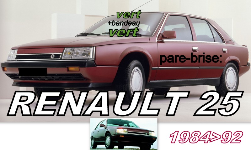 RENAULT 25 pare-brise teinté vert +bandeau vert – 1984/92